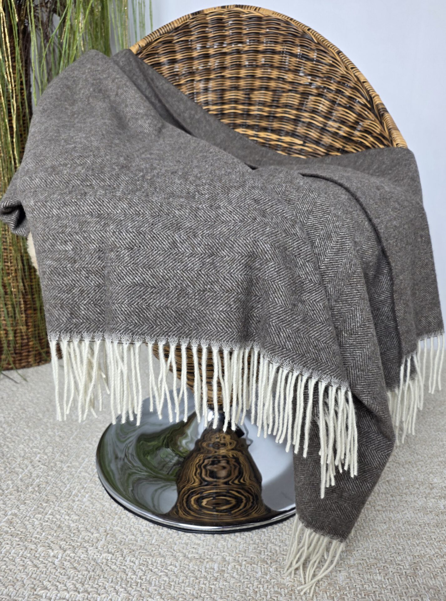 von Merinowolle mit Kaschmir (das Plaid ist hergestellt aus 90% hochqualitativer weicher Merinowolle mit einem Zusatz von 10% Kaschmir). Ungeachtet dessen, dass das Plaid nicht dick ist, hält es