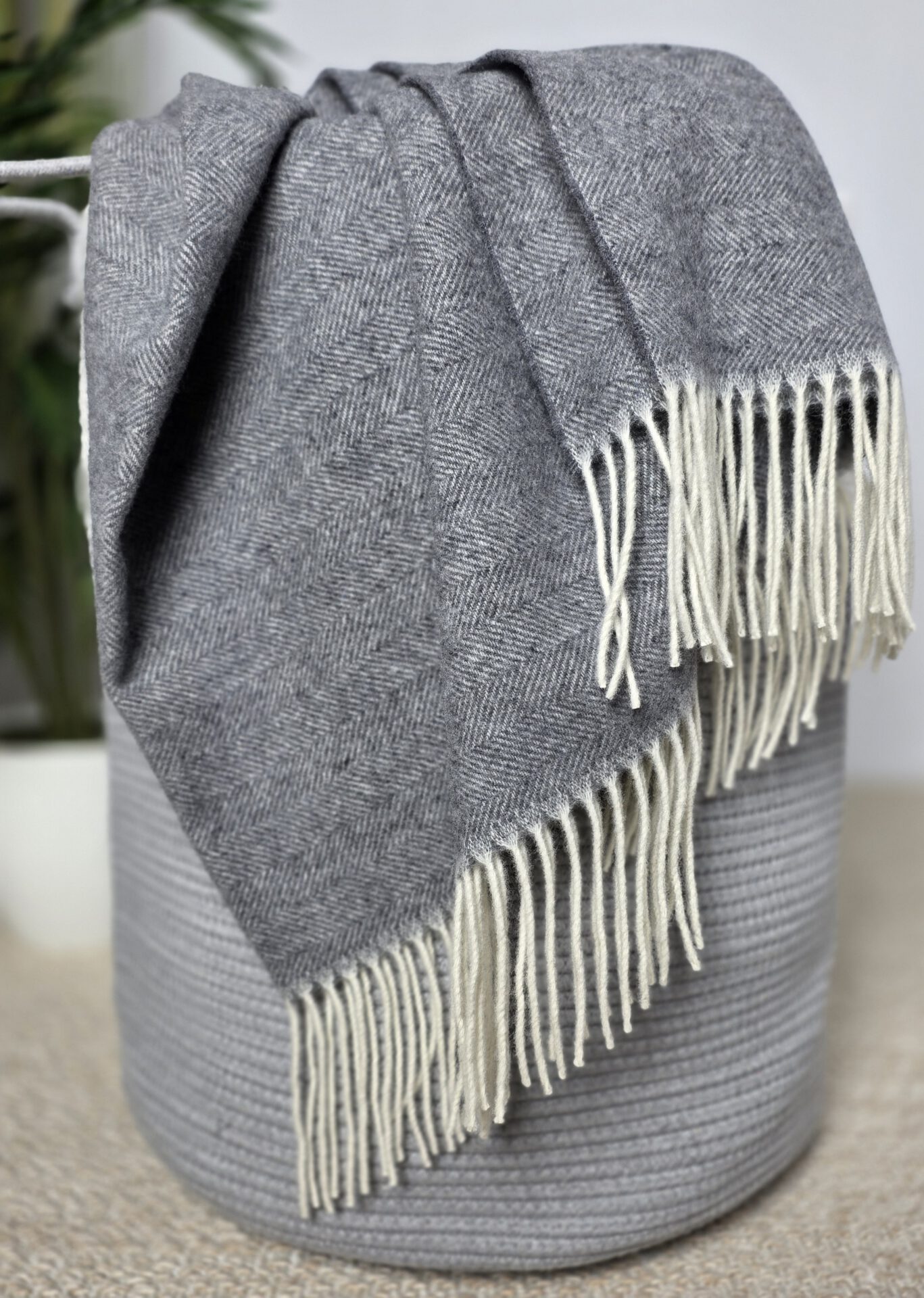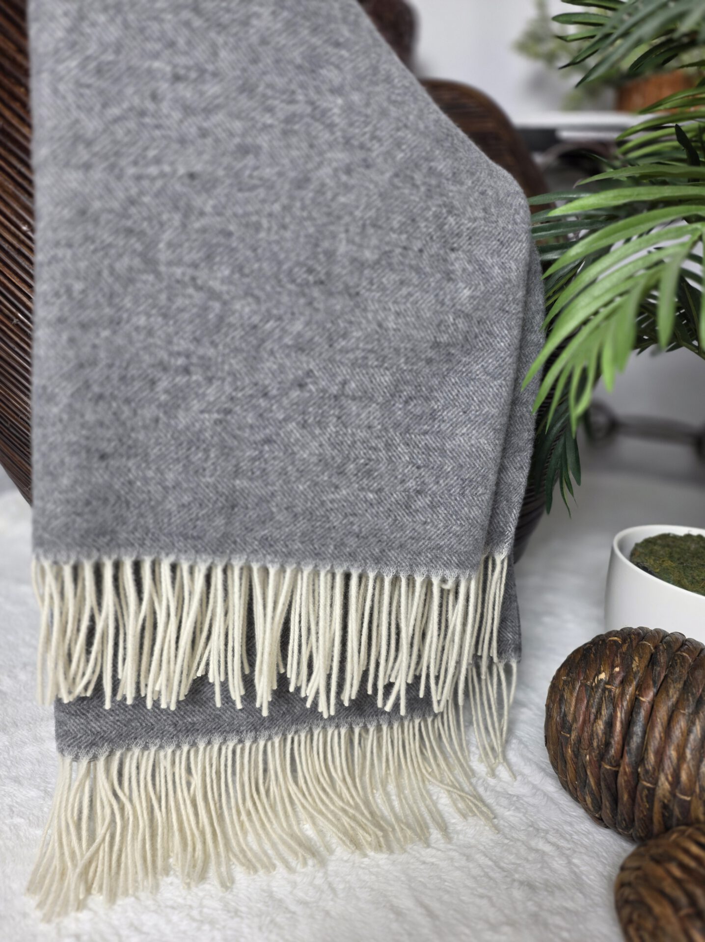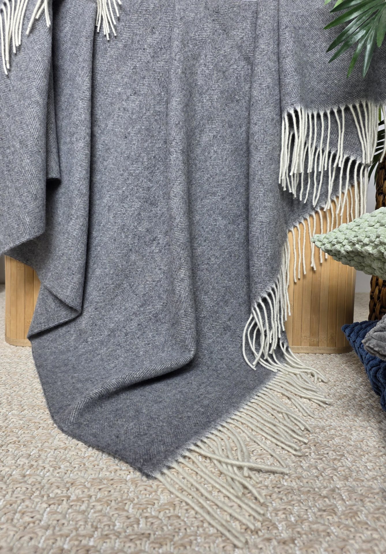 von Merinowolle mit Kaschmir (das Plaid ist hergestellt aus 90% hochqualitativer weicher Merinowolle mit einem Zusatz von 10% Kaschmir). Ungeachtet dessen, dass das Plaid nicht dick ist, hält es