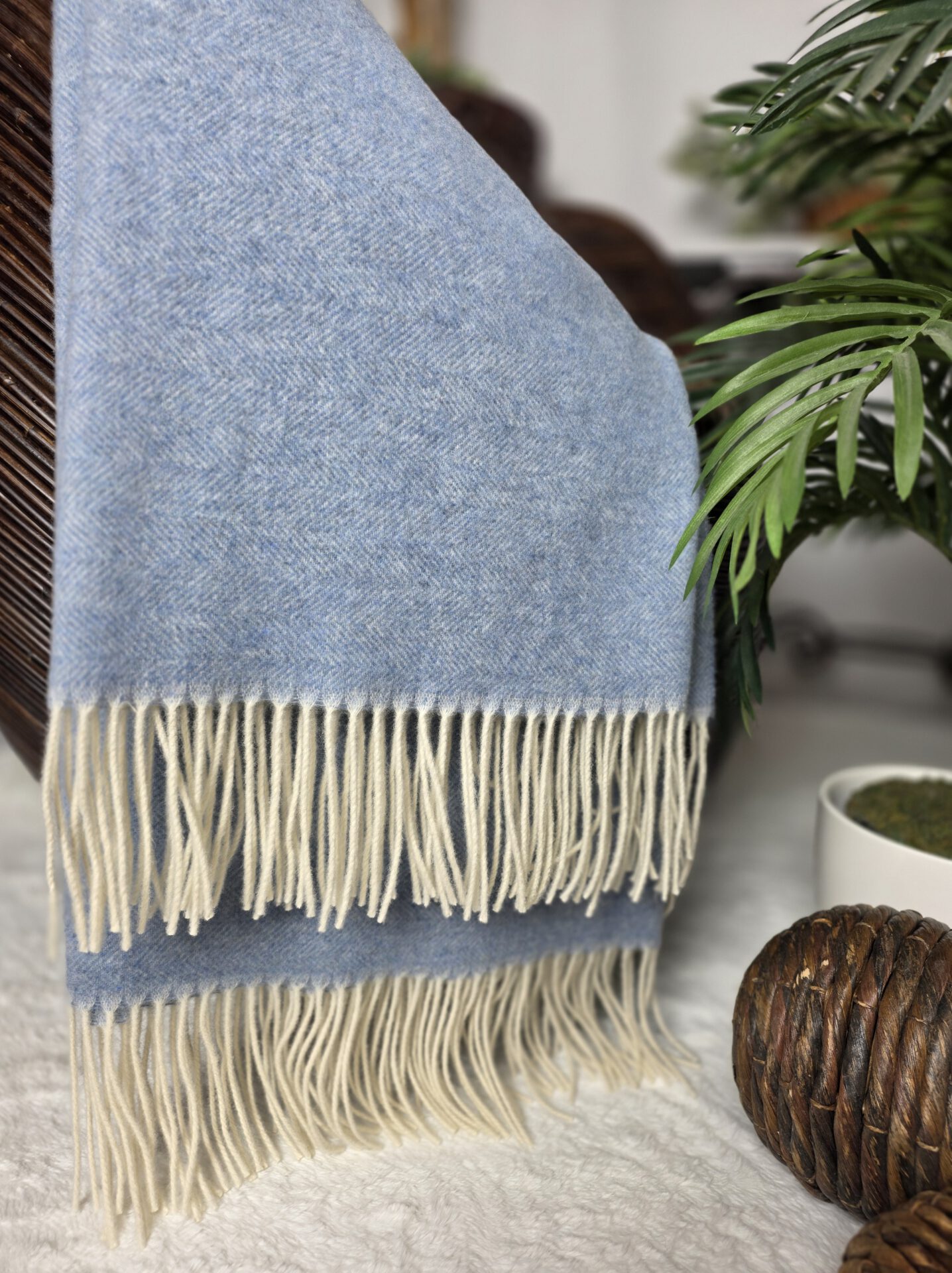 Wolldecke & Wollplaid, 90 % Merinowolle,10% Kaschmir „Faro C“ hellblau