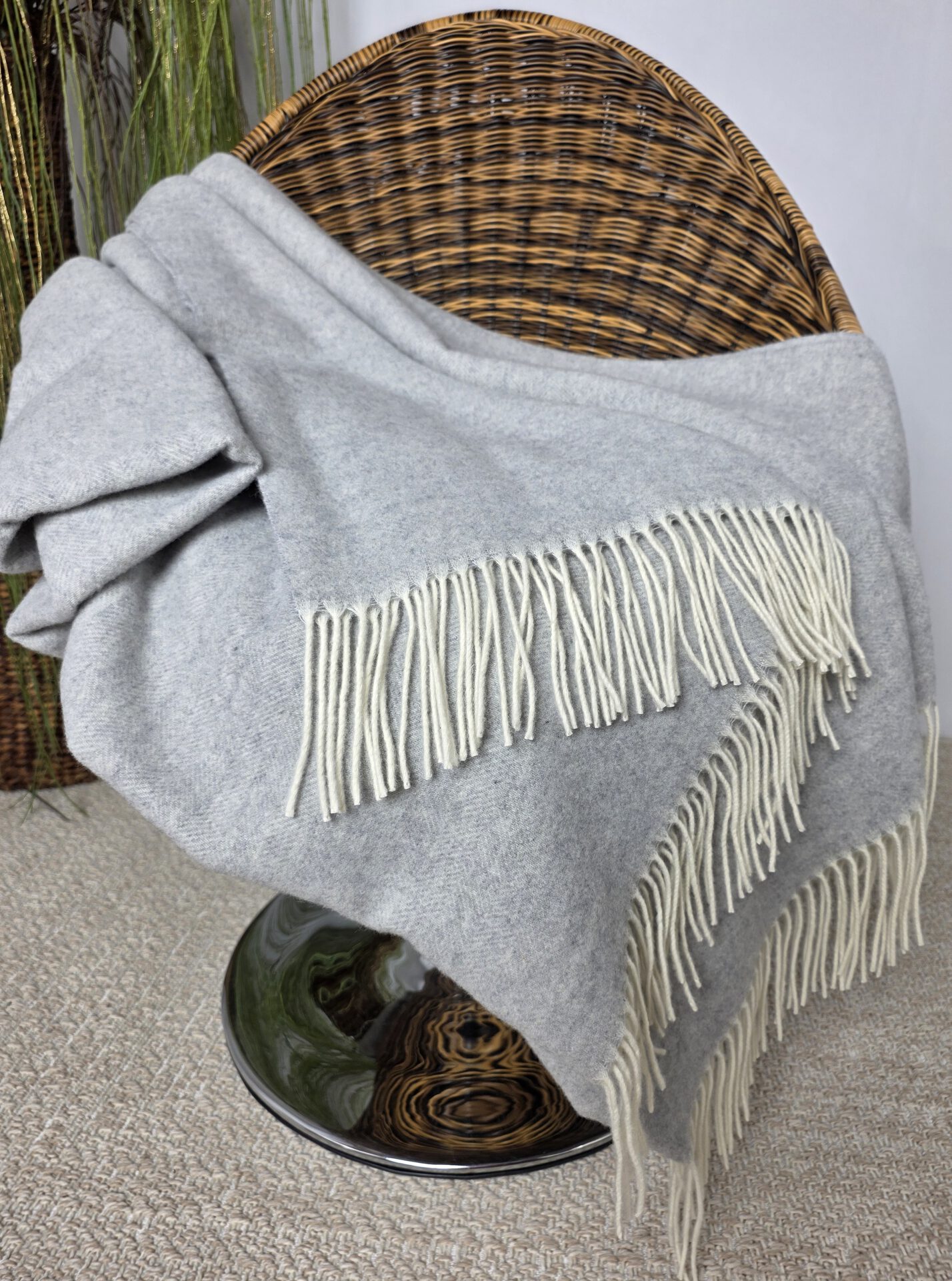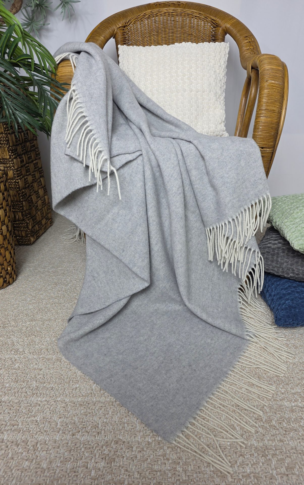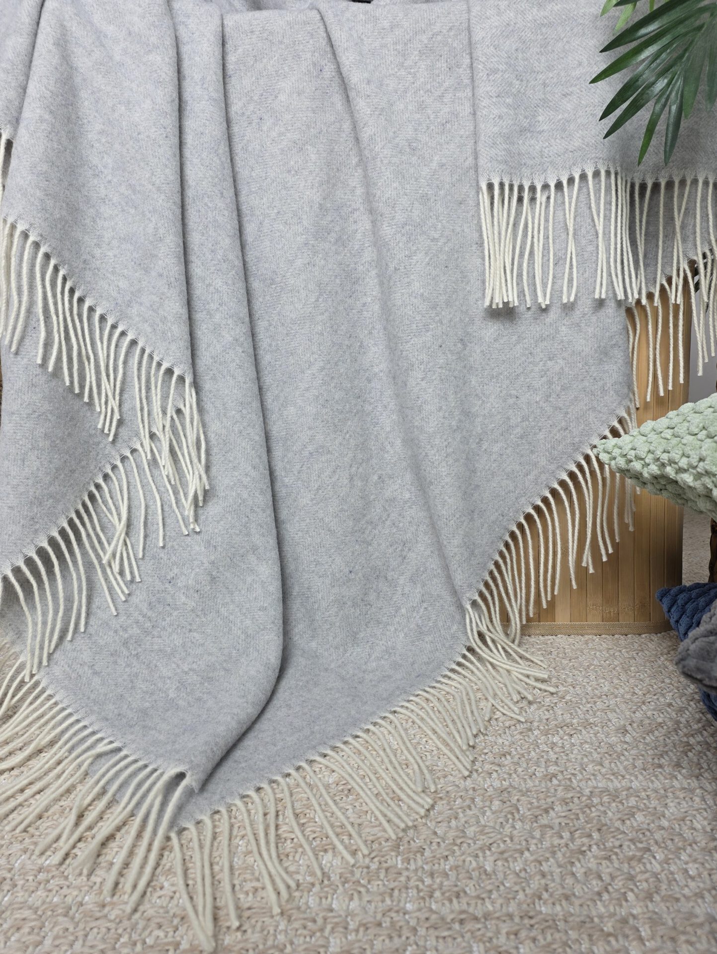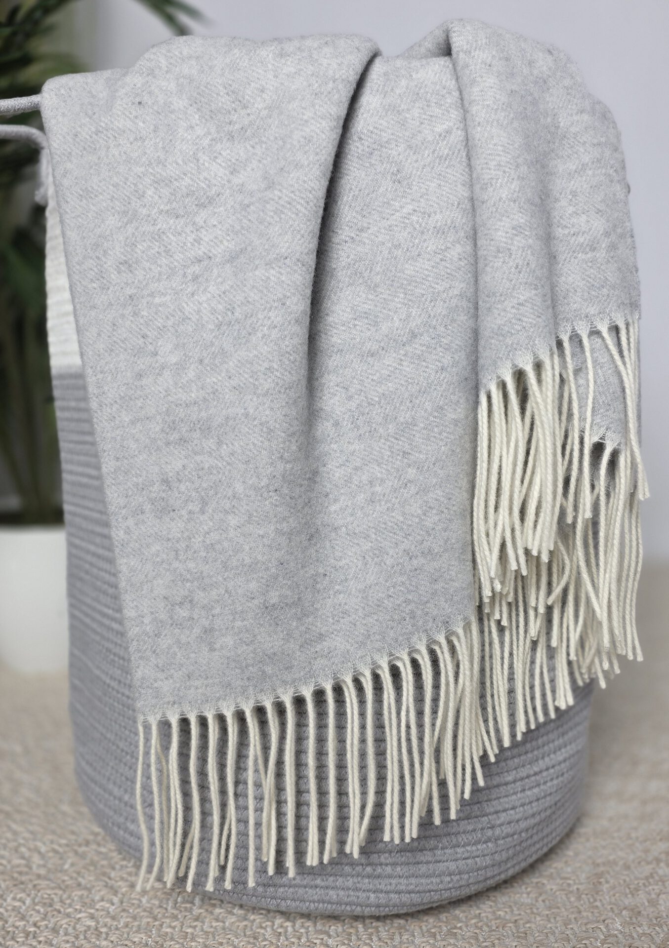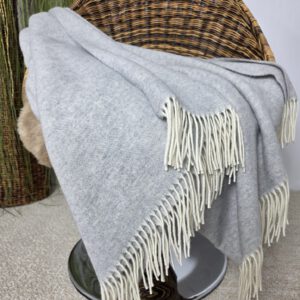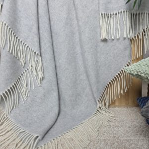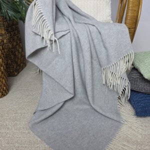 von Merinowolle mit Kaschmir (das Plaid ist hergestellt aus 90% hochqualitativer weicher Merinowolle mit einem Zusatz von 10% Kaschmir). Ungeachtet dessen, dass das Plaid nicht dick ist, hält es