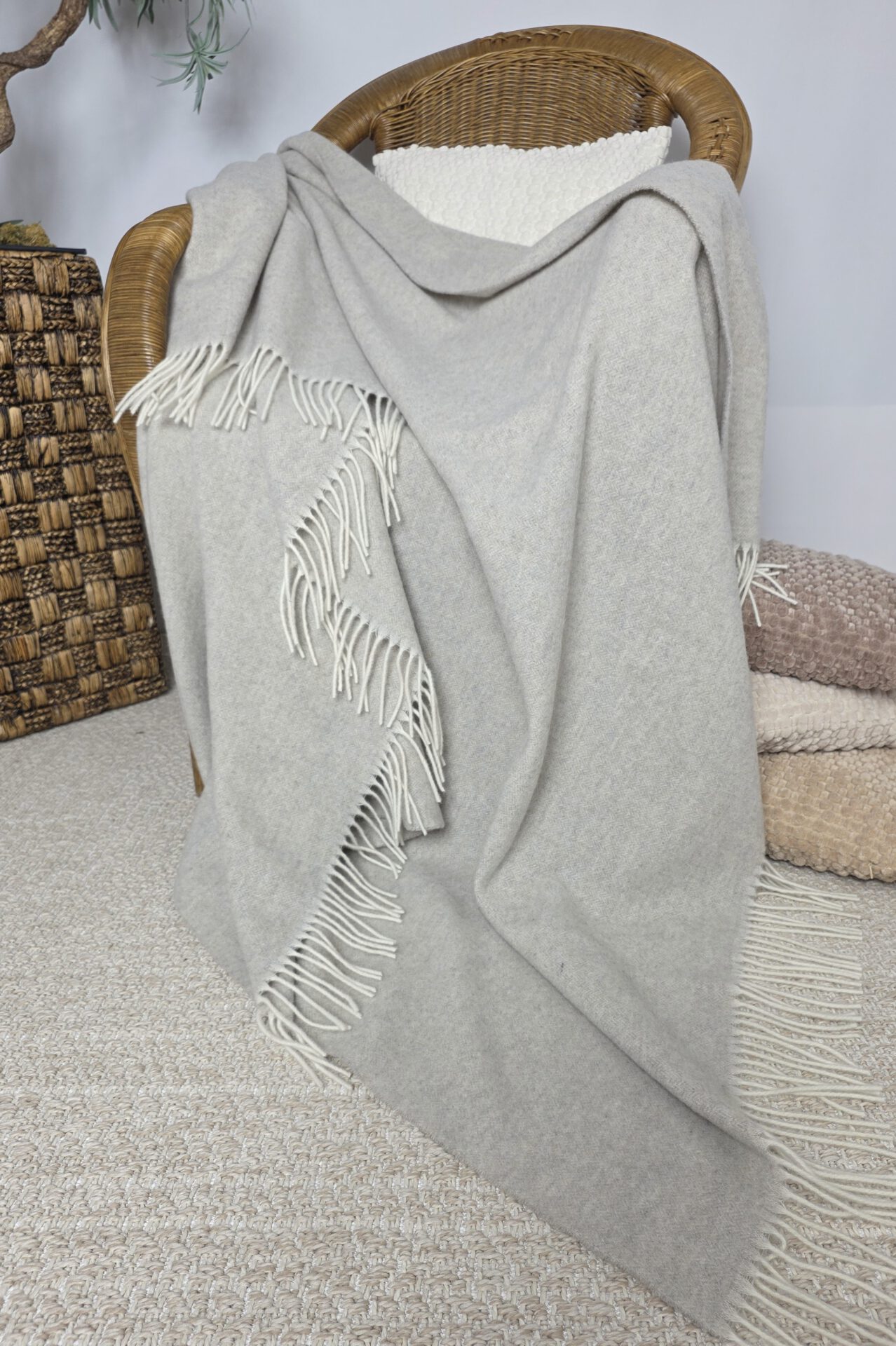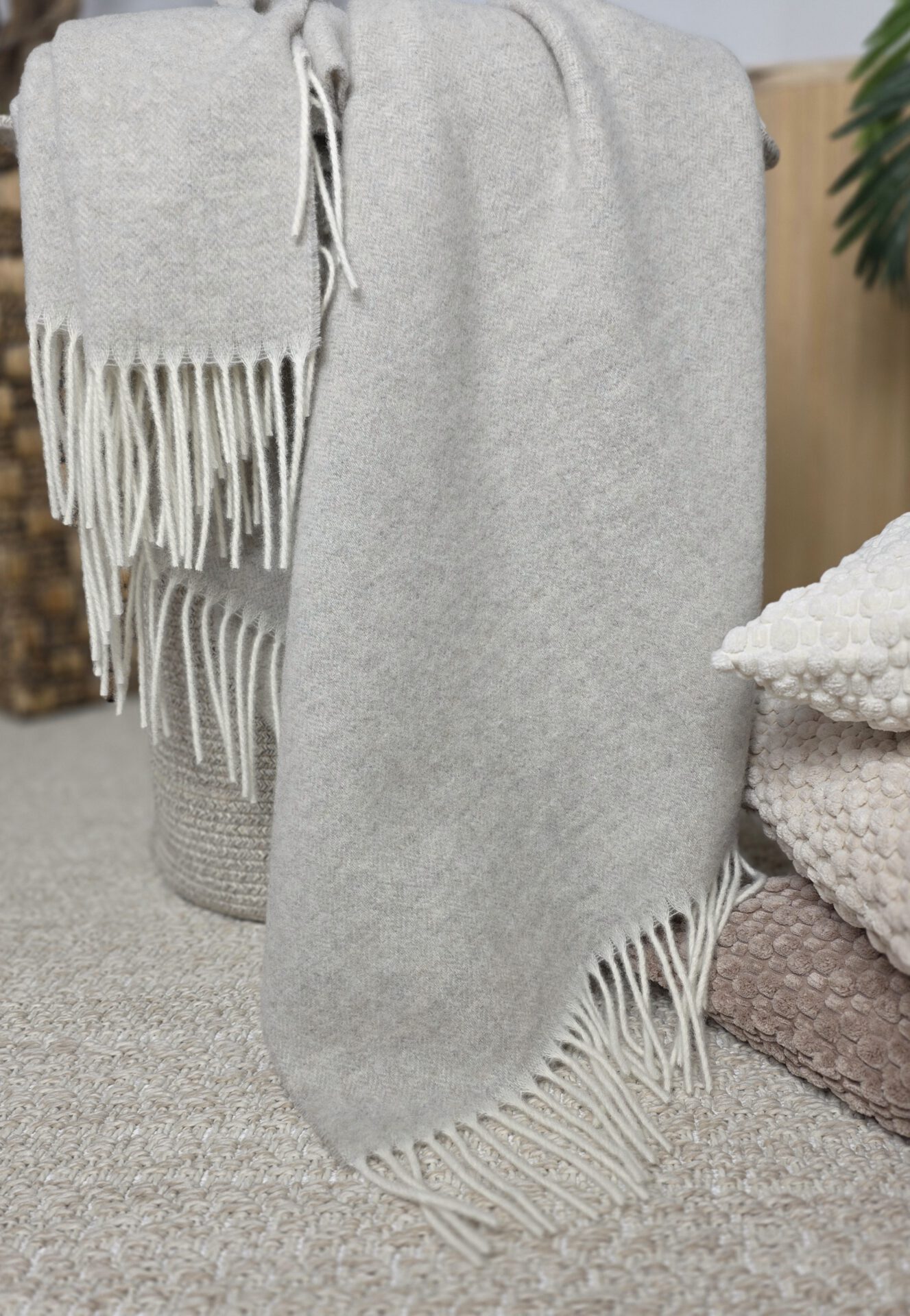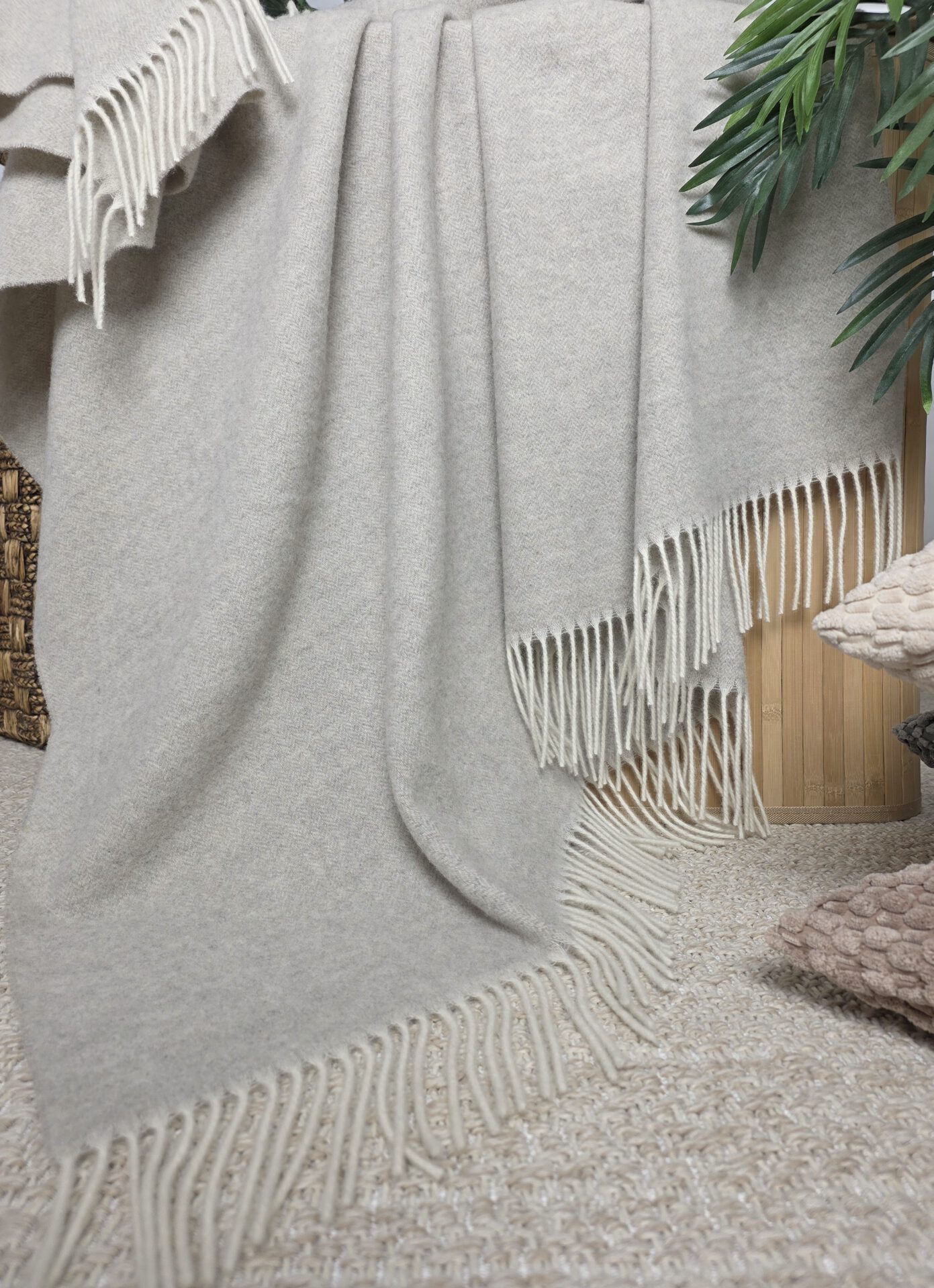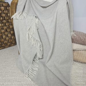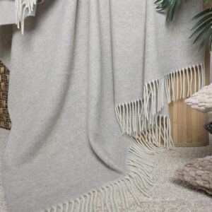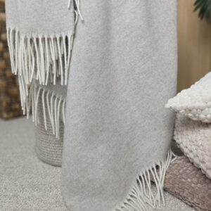 von Merinowolle mit Kaschmir (das Plaid ist hergestellt aus 90% hochqualitativer weicher Merinowolle mit einem Zusatz von 10% Kaschmir). Ungeachtet dessen, dass das Plaid nicht dick ist, hält es