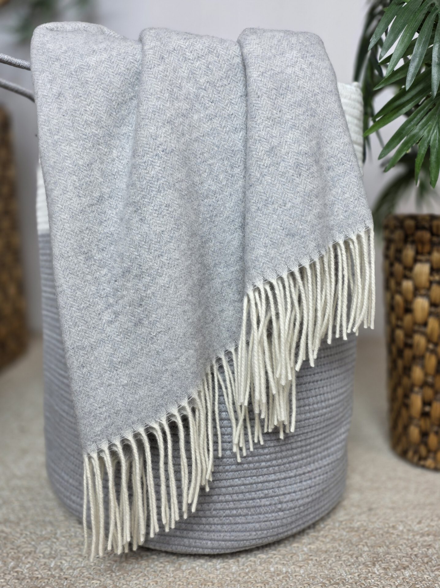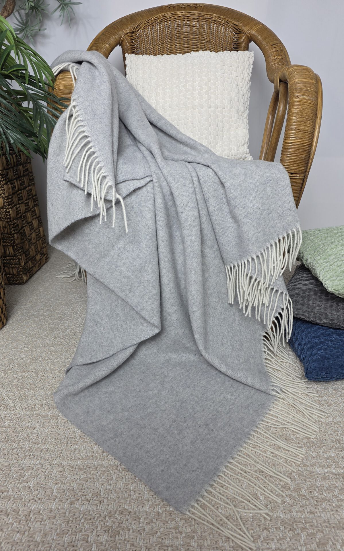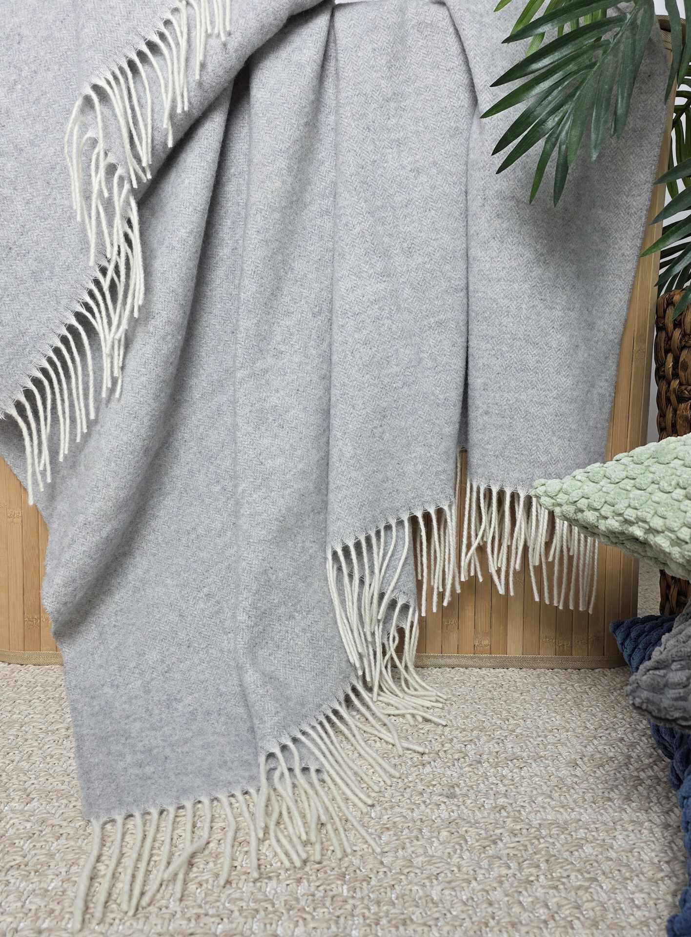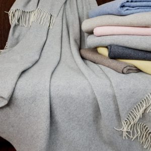 von Merinowolle mit Kaschmir (das Plaid ist hergestellt aus 90% hochqualitativer weicher Merinowolle mit einem Zusatz von 10% Kaschmir). Ungeachtet dessen, dass das Plaid nicht dick ist, hält es