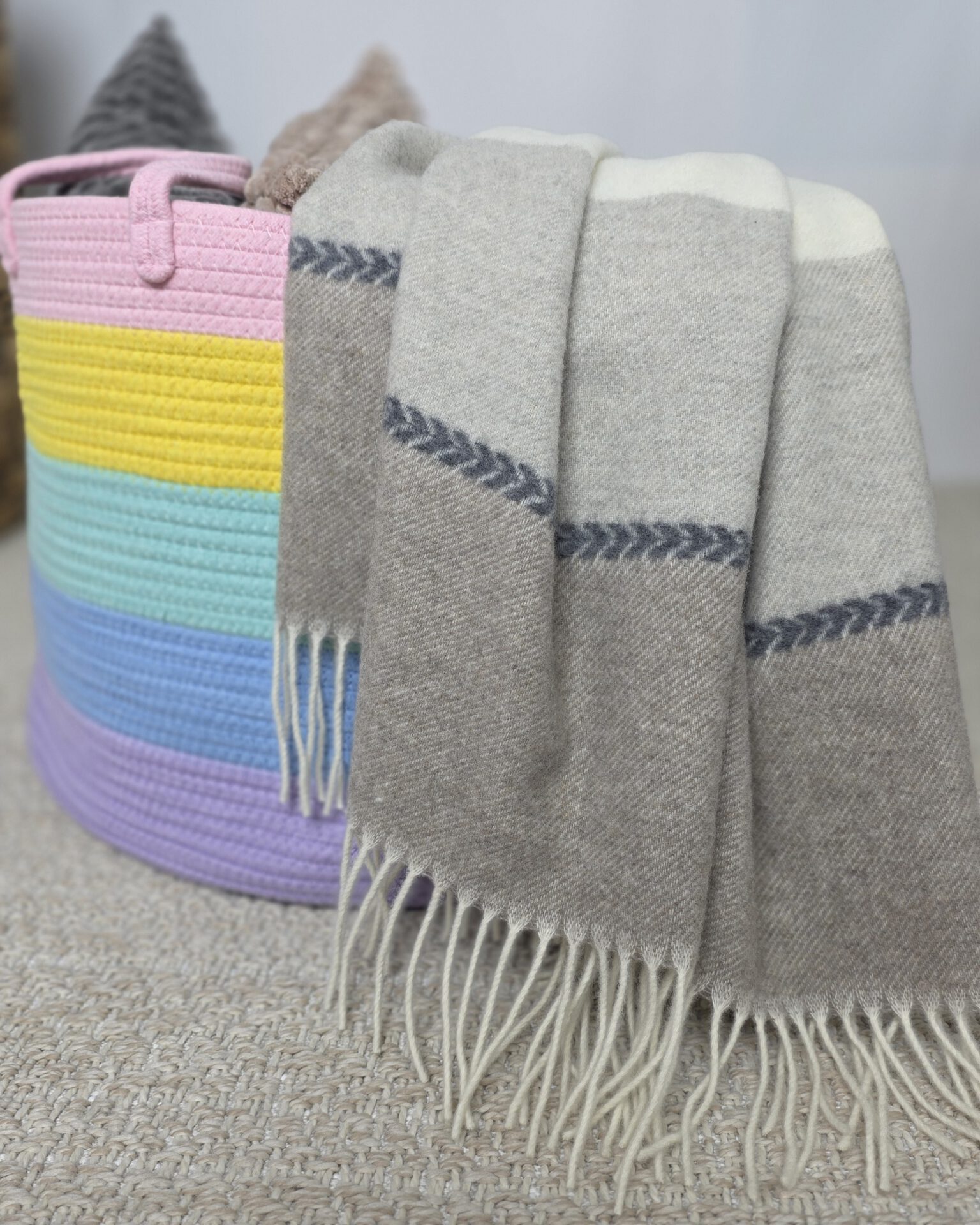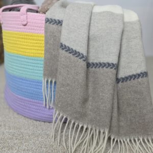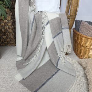 von Merinowolle mit Kaschmir (das Plaid ist hergestellt aus 90% hochqualitativer weicher Merinowolle mit einem Zusatz von 10% Kaschmir). Ungeachtet dessen, dass das Plaid nicht dick ist, hält es