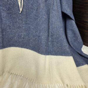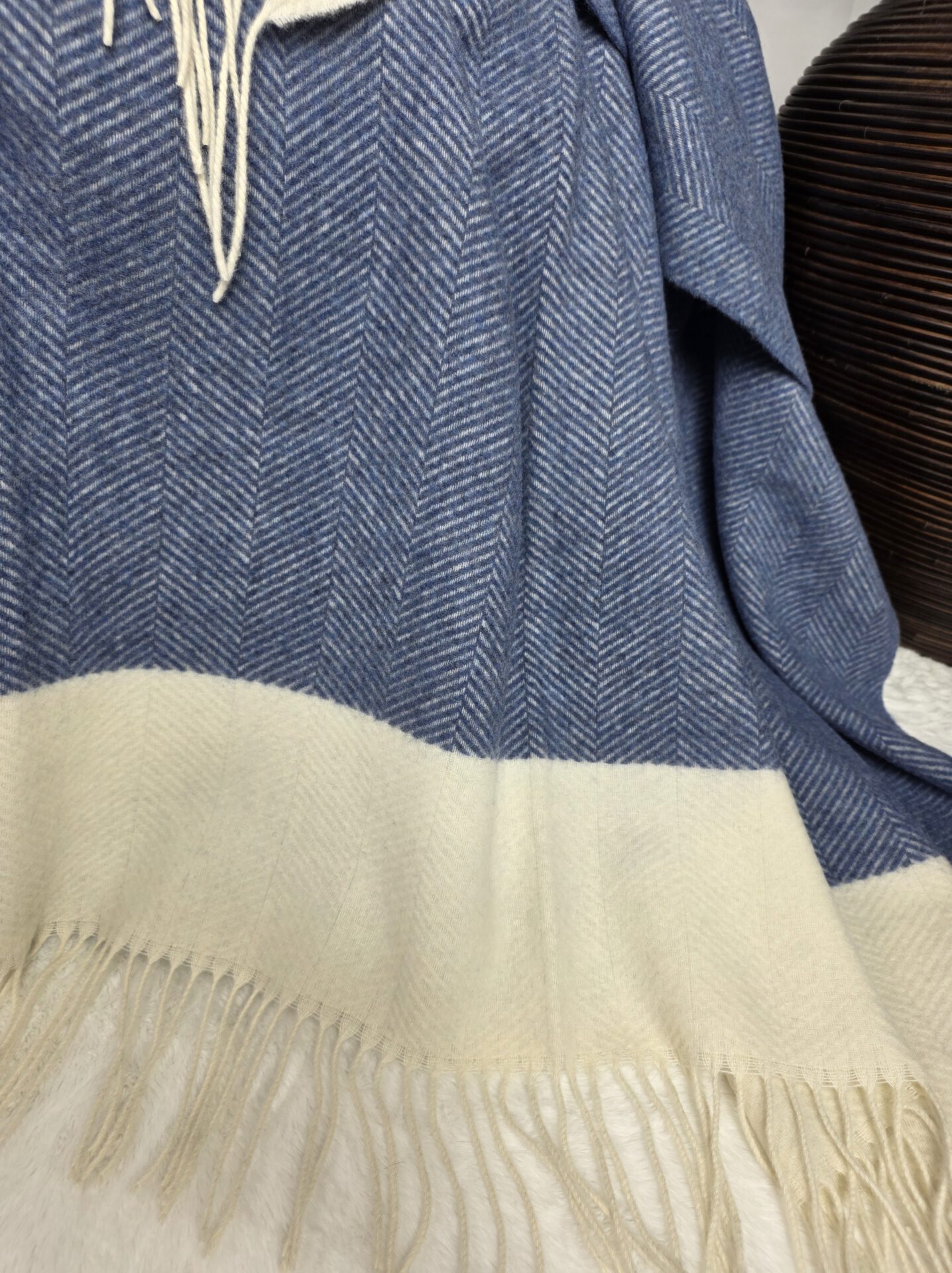 von Merinowolle mit Kaschmir (das Plaid ist hergestellt aus 90% hochqualitativer weicher Merinowolle mit einem Zusatz von 10% Kaschmir). Ungeachtet dessen, dass das Plaid nicht dick ist, hält es