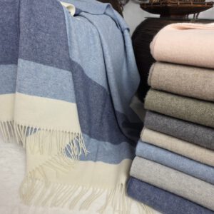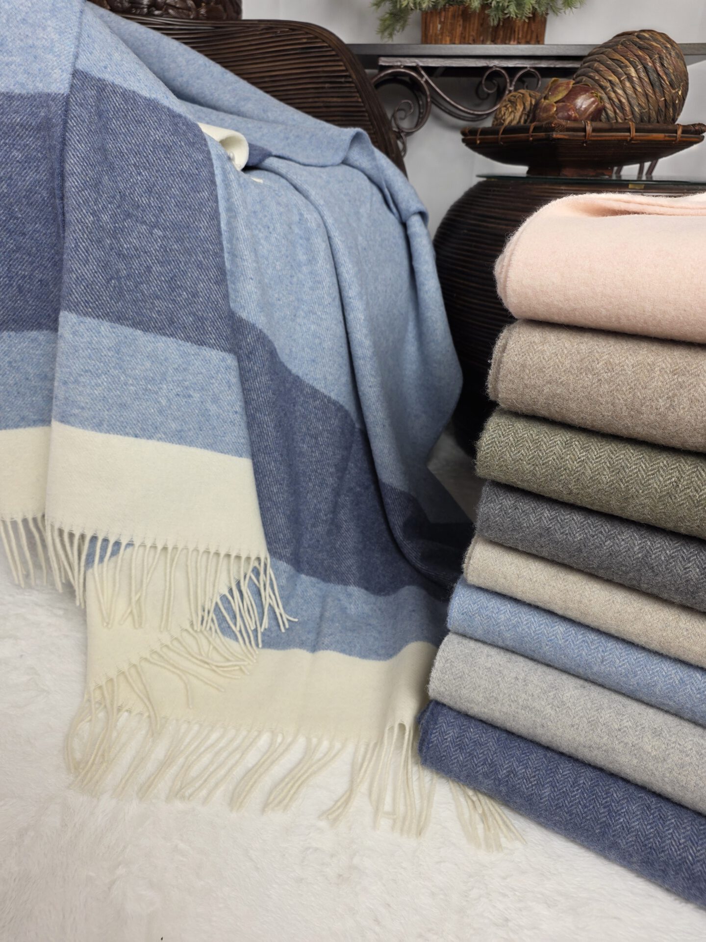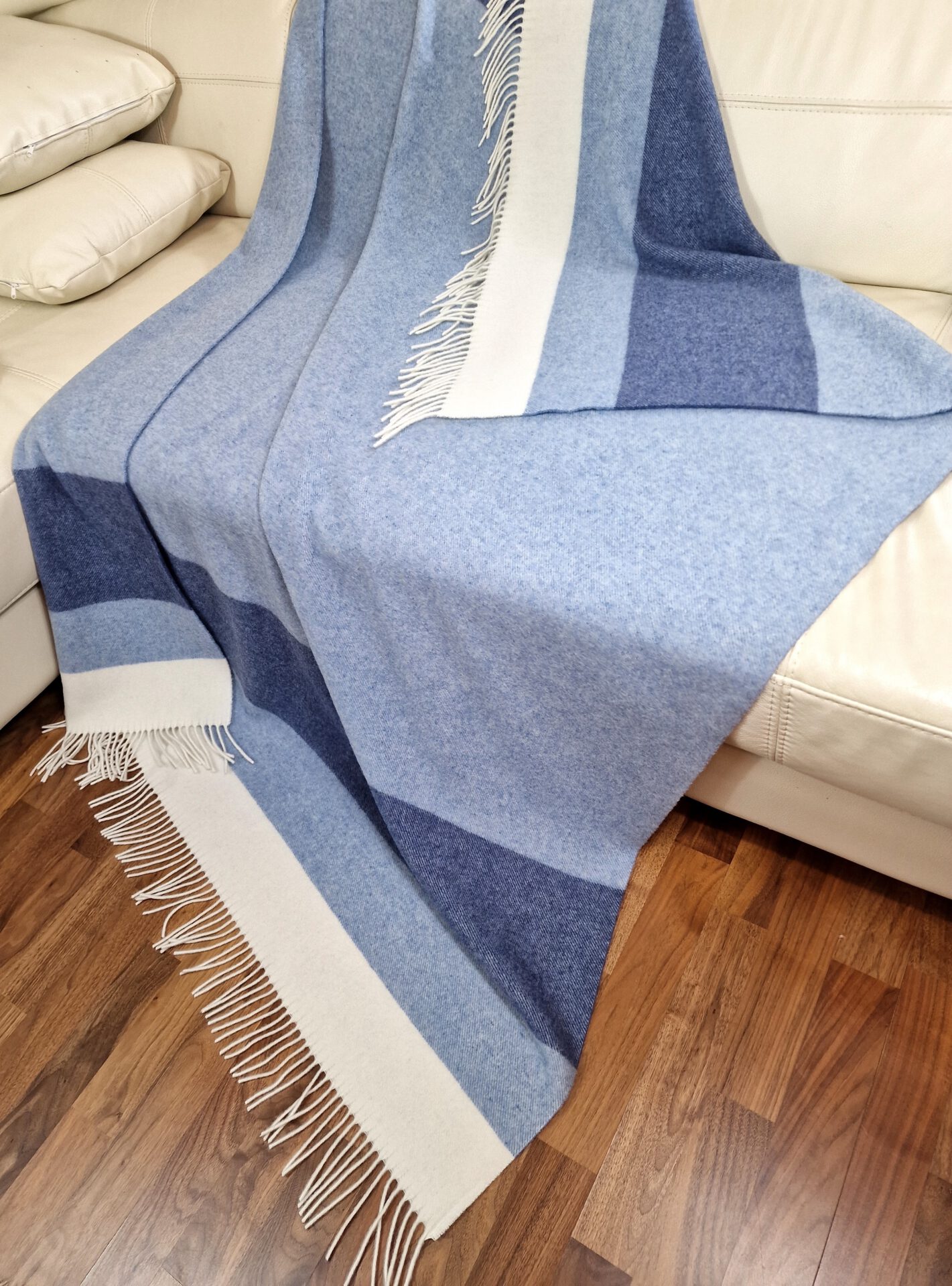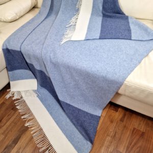 Wolldecke & Wollplaid, 90 % Merinowolle,10% Kaschmir „Faro S“ blau-hellblau
