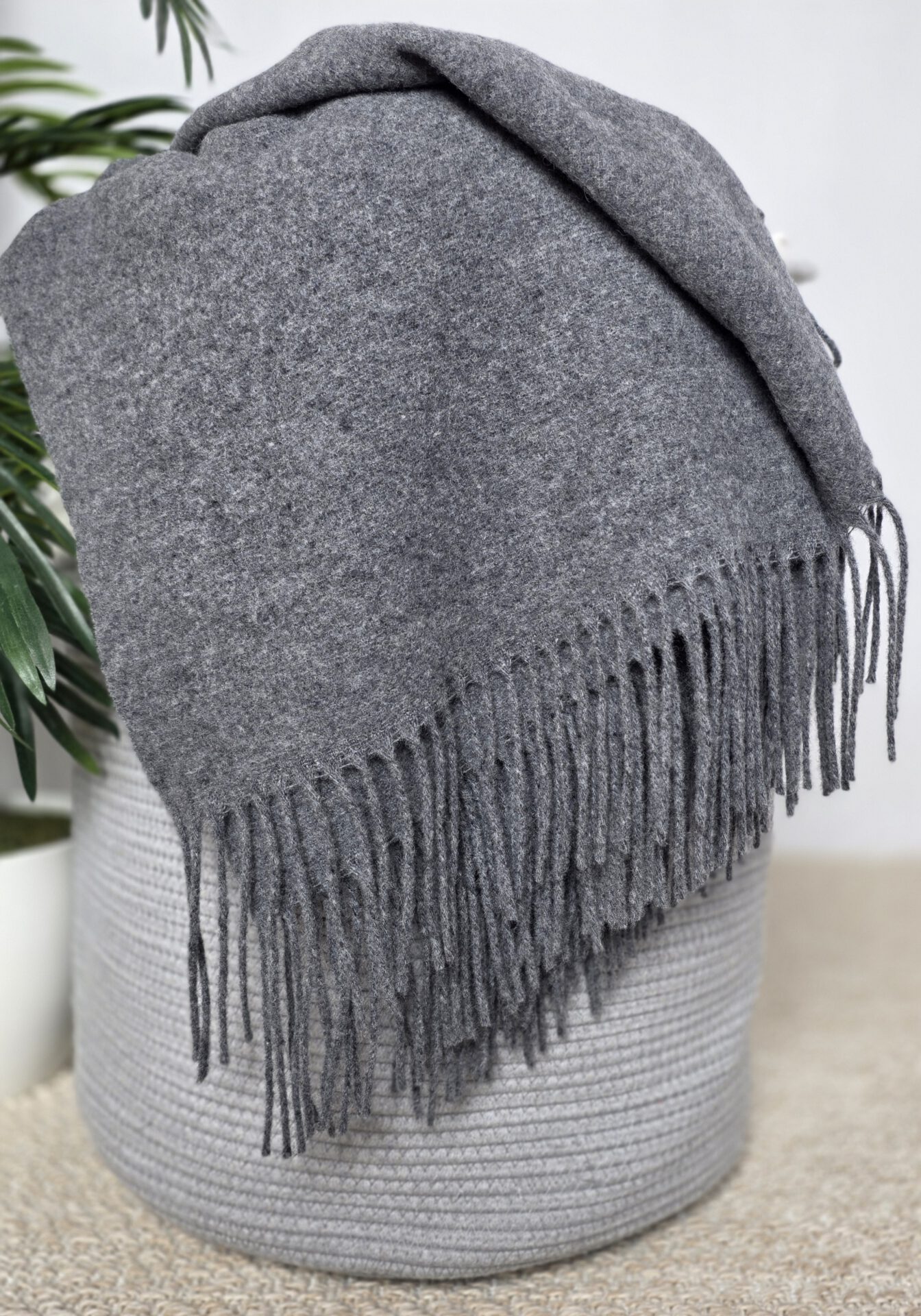 Wolldecke & Wollplaid, 90 % Merinowolle,10% Kaschmir „Faro U“ dunkelgrau