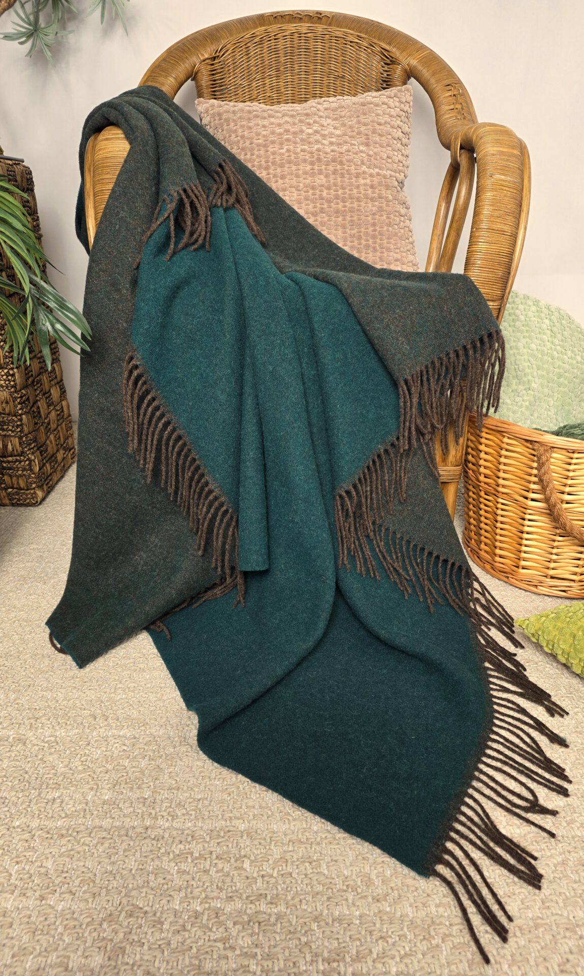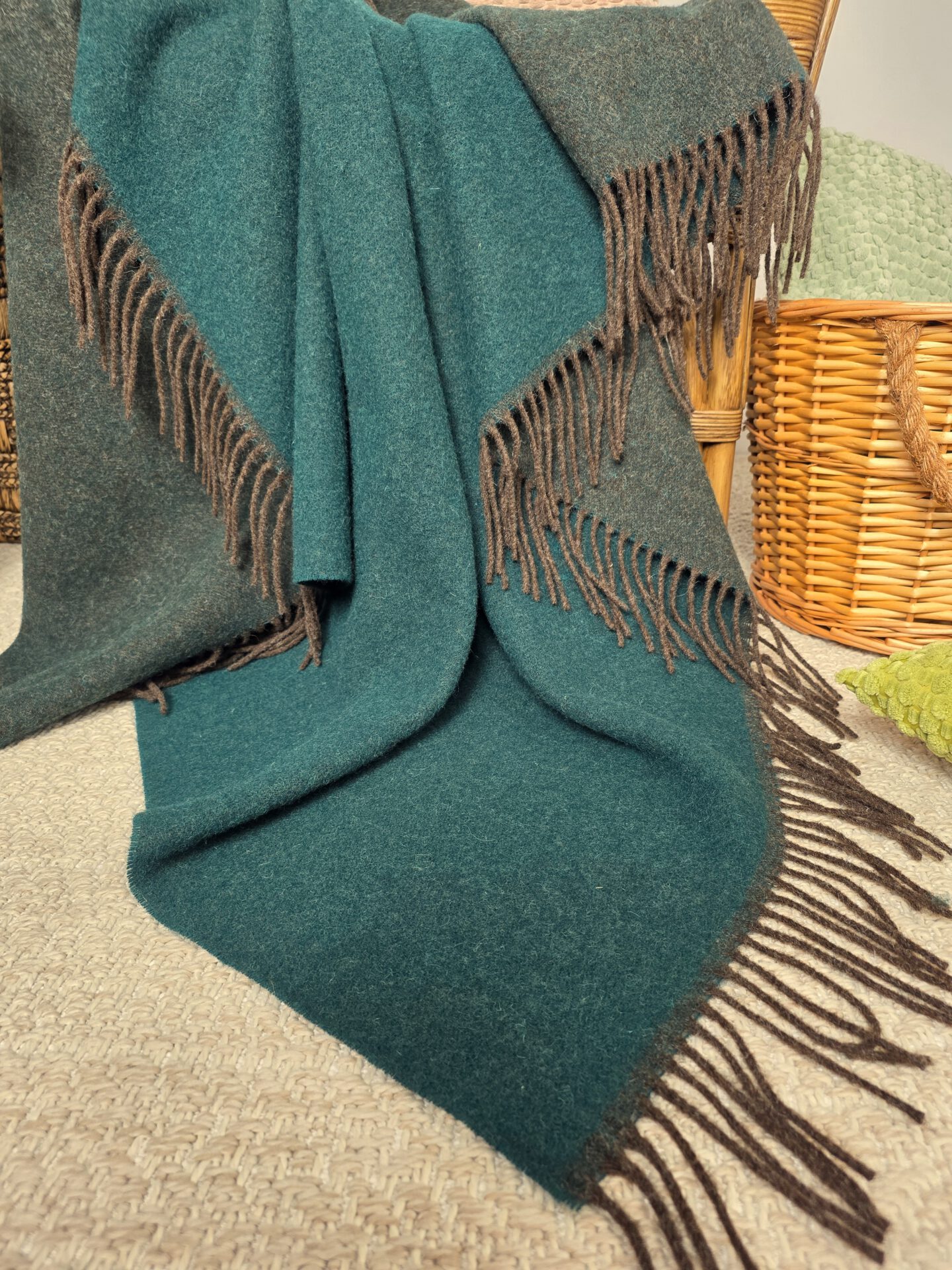 Ein schönes Schurwoll-Plaid aus reiner 100 % Wolle (Schurwolle) mit Fransenabschluss und