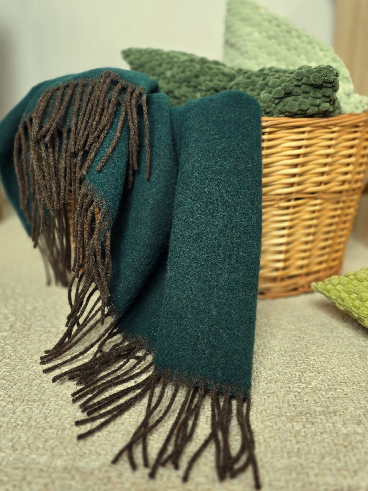 dem für Schurwolle typischen leicht kratzig-rauen Gefühl beim Anfassen.