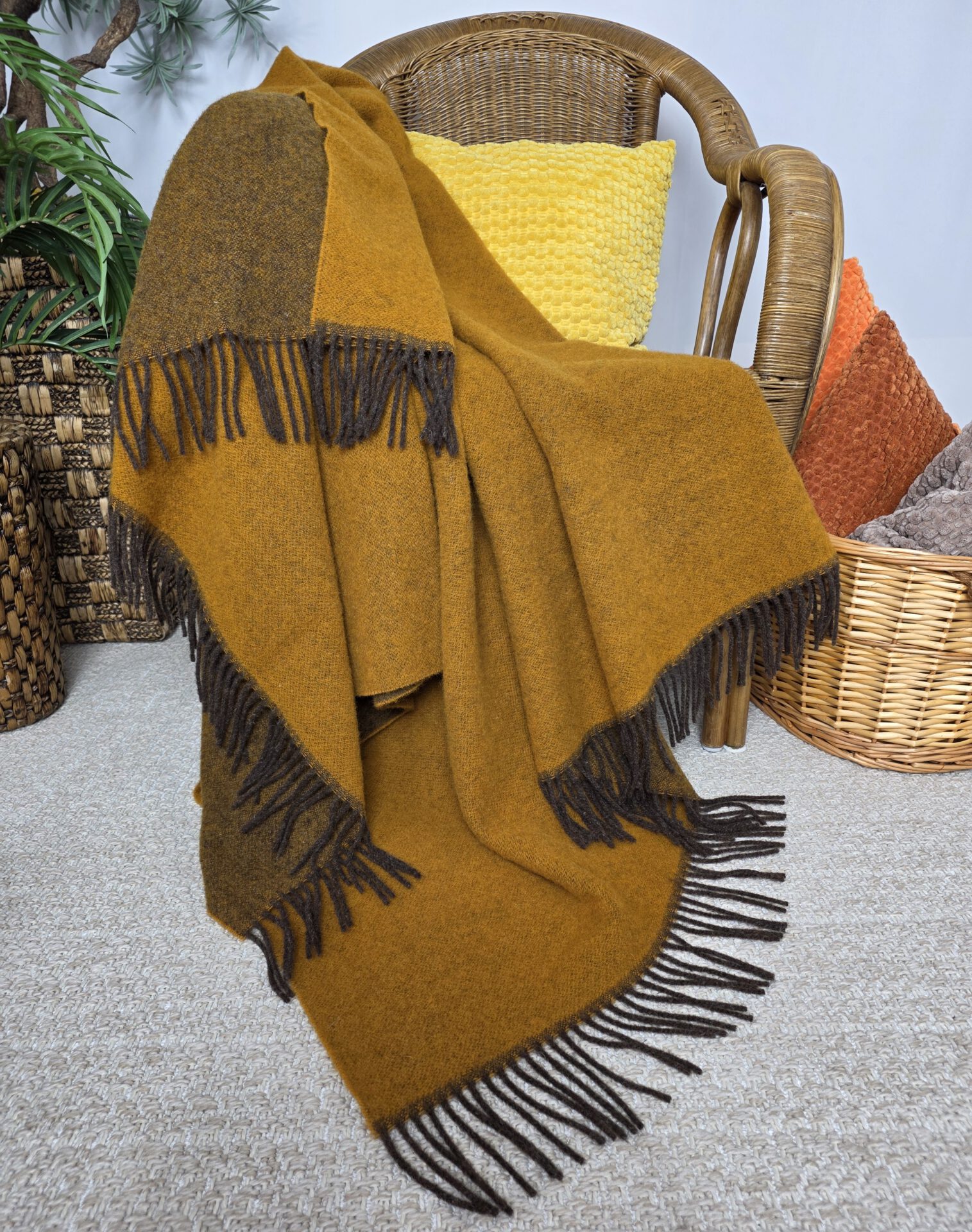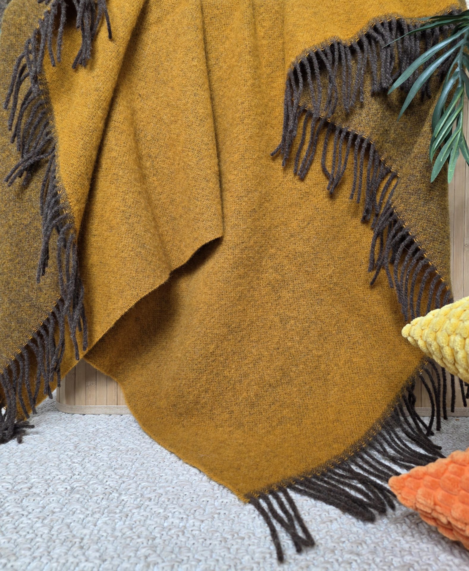 Ein schönes Schurwoll-Plaid aus reiner 100 % Wolle (Schurwolle) mit Fransenabschluss und