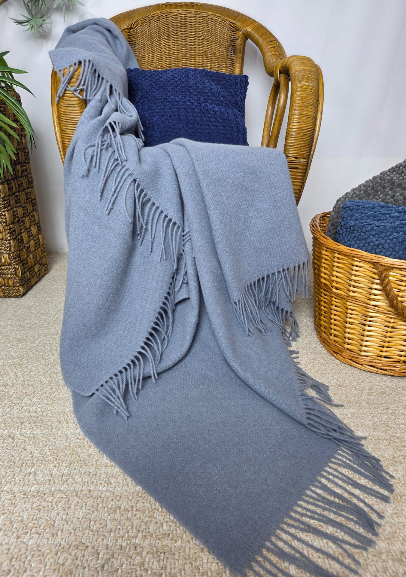 Ein schönes Schurwoll-Plaid aus reiner 100 % Wolle (Schurwolle) mit Fransenabschluss und