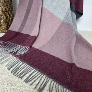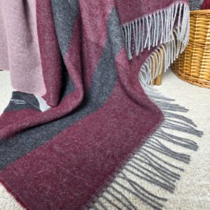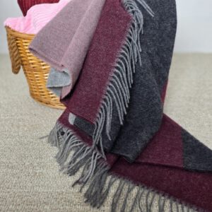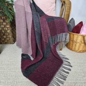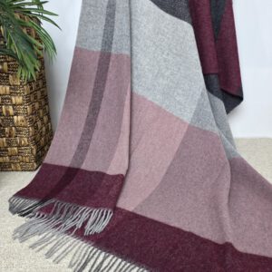 Wollplaid & Wolldecke „Tirol F“ dunkelrot-altrosa-grau