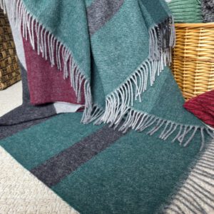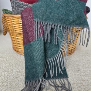 Wollplaid & Wolldecke „Tirol F“ grün-dunkelrot-grau